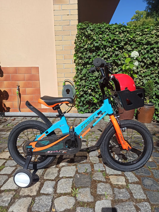 SKYS barncykel frĂĄn 3 till 9 ĂĄr 14/16/18 tum blĂĄ orange