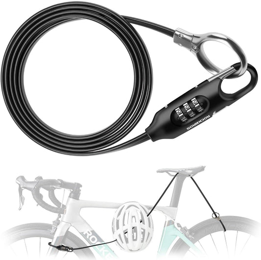 ROCKBROS cykellås kabellås 150cm med nummerkod stöldskydd för cykelskoter barnvagn röd/svart