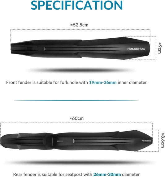 ROCKBROS cykelstänkskärm fram + bak för 24-29 tum, infällbar och justerbar