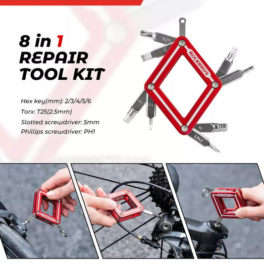 ROCKBROS cykel multifunktionellt verktyg 8 i 1 reparation hopfällbart verktyg reparation