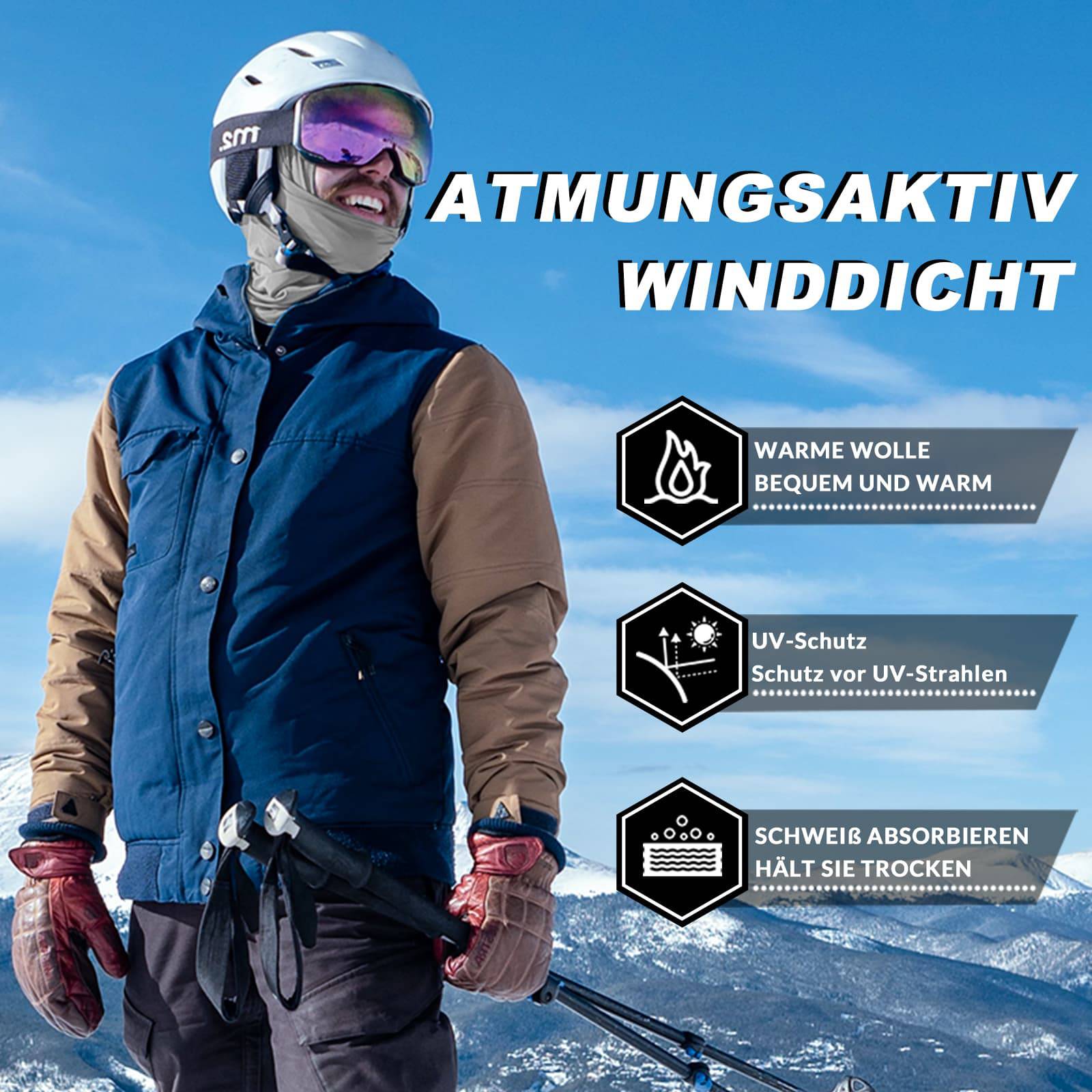 Håll dig varm och bekväm under alla dina vinteraktiviteter utomhus med denna mångsidiga balaklava. Det mjuka fleecefodret och den förlängda vindtäta fållen ger ett tillförlitligt skydd för ansikte och hals mot kylan. Tack vare den ergonomiska 3D-skärningen och det elastiska tyget sitter den tätt men ändå flexibel – perfekt under hjälmar eller för att bäras på egen hand. Det andningsbara materialet förhindrar överhettning och möjliggör olika användningsalternativ. En reflekterande logotyp ökar synligheten i svagt ljus, vilket garanterar säkerheten under kvällsäventyr utomhus.