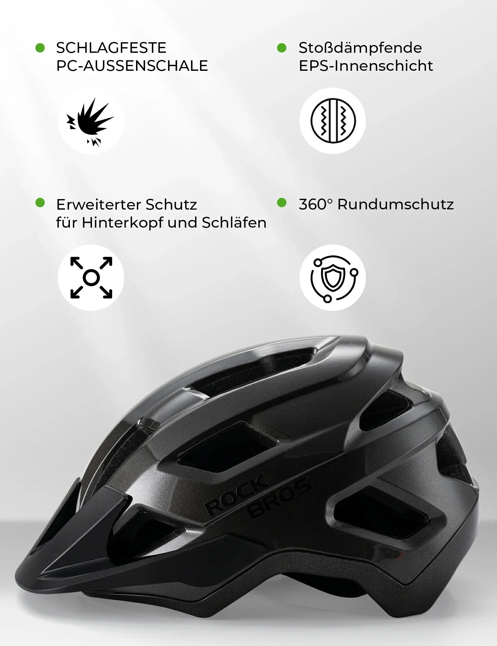FÖRBÄTTRAT SKYDD: Det robusta PC-skalet är stöttåligt, medan EPS-innerskalet ger stötdämpning. Dessutom sträcker sig baksidan och tinningarna längre ner för bättre huvudskydd och ökad säkerhet.
