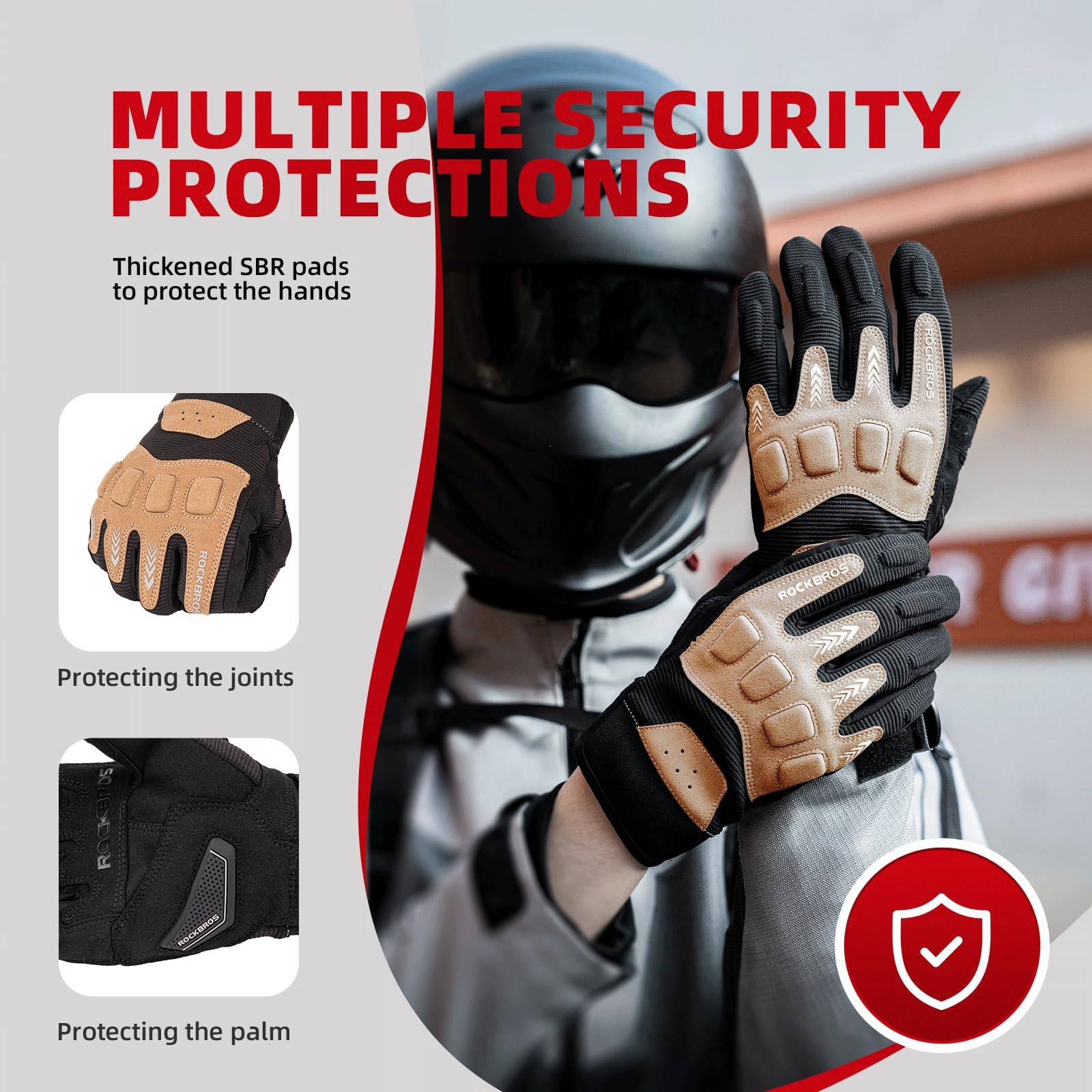 - Våra cykelhandskar har tjocka SBR-dynor på handryggen och fingerlederna. utrustad för att skydda dina händer och minska skador orsakade av olyckor.