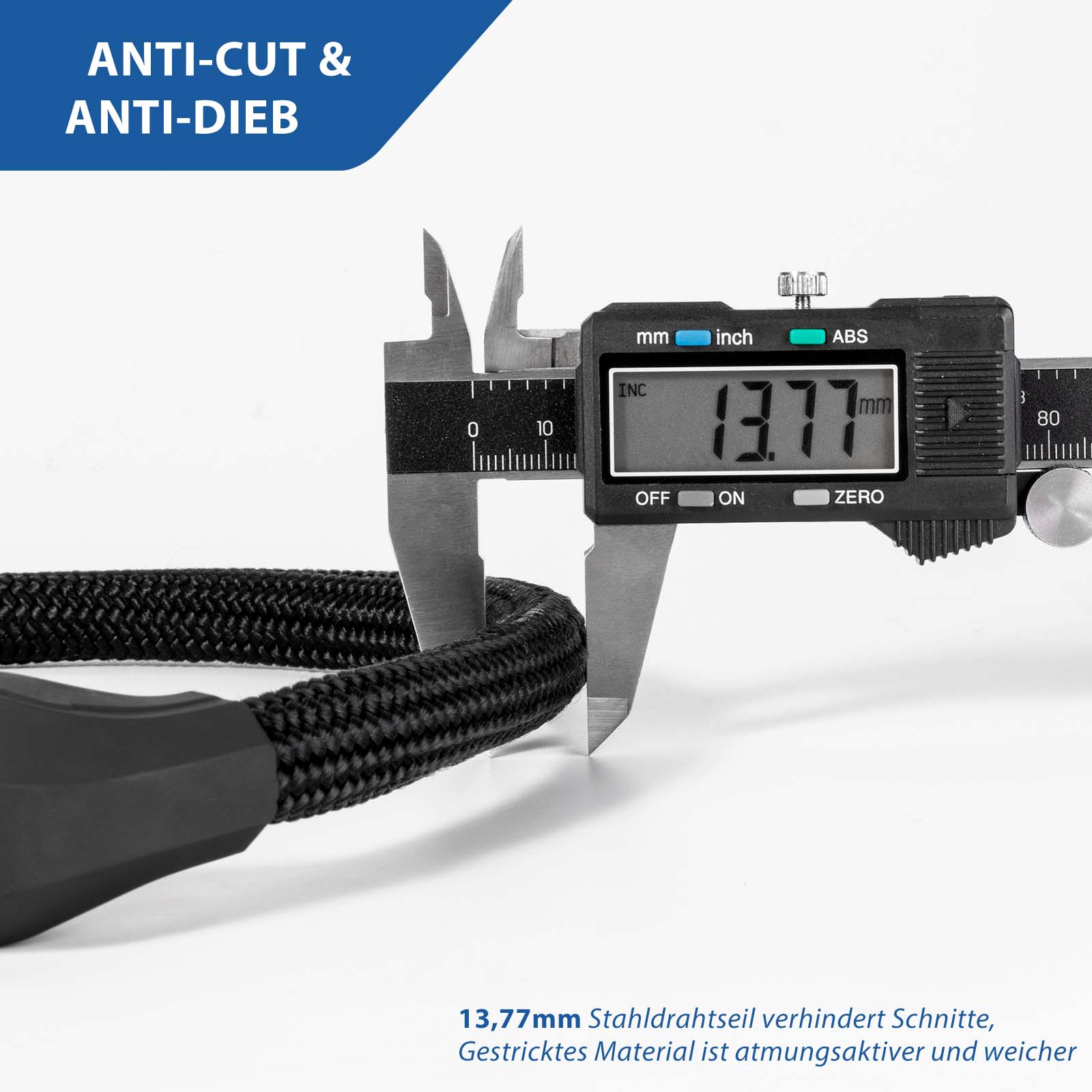 - Multifunktionell användning: Låskedjan är 180 mm lång och mycket praktisk. Detta kabellås är idealiskt lämpat som stöldskydd och säkerhetsanordning för motorcyklar, mopeder, skotrar, elcyklar, lastcyklar, trädgårdsmöbler, grindar, källargrindar, trädgårdsgrindar och/eller som containerlås eller motorcykellås. Skydd mot repor: Det mycket flexibla syntetfiberhöljet skyddar mot lackskador och absorberar inte vätskor som vatten eller oljor. Dessutom kan två eller fler identiska lås användas i kombination.