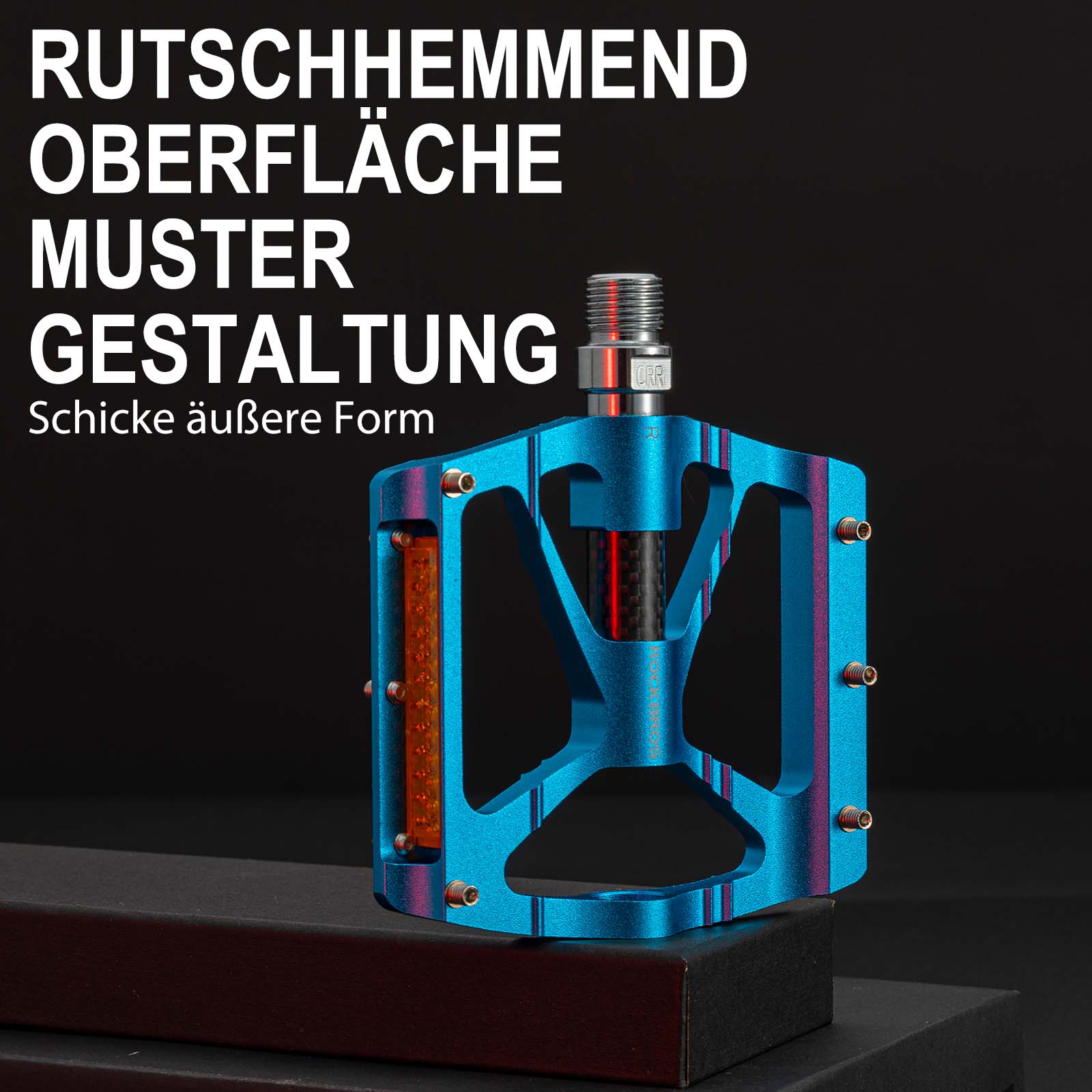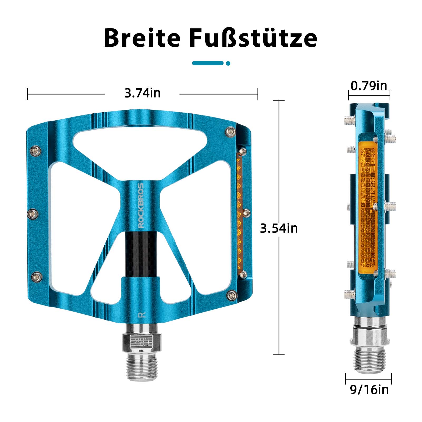- Hållbart material: Mountainbikepedalerna är tillverkade av aluminium med CNC-teknik. De har en gängad spindel i 100 % krommolybden 9/16, tätade lager och är vattentäta och dammtäta.