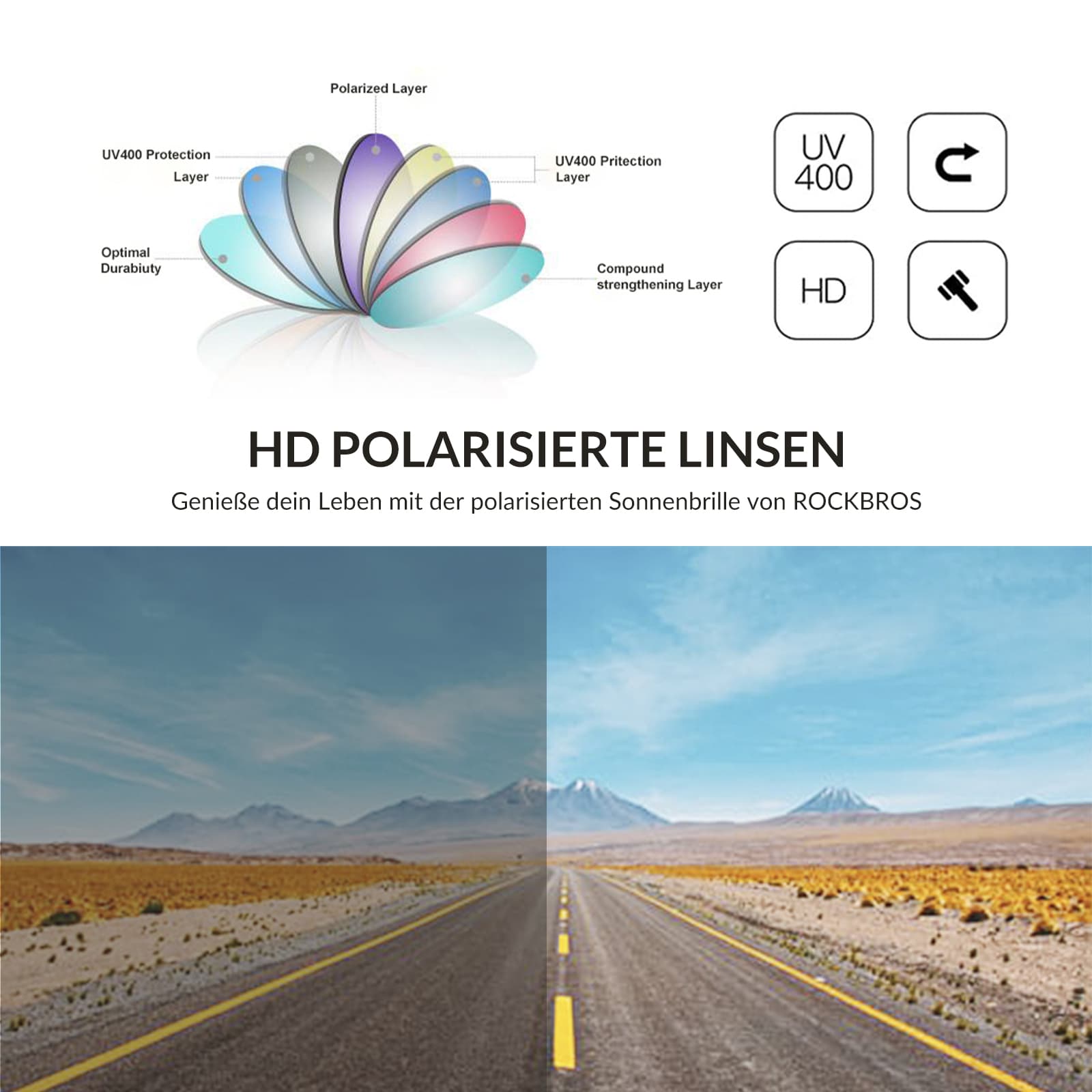 UV-skydd: 100 % av skadliga strålar blockeras. Våra glasögon erbjuder överlägset ögonskydd.