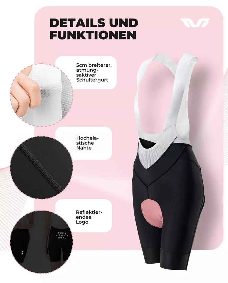 ROCKBROS Cykelbyxshorts för kvinnor med remmar, Vadderade Cykelhaklappshorts, MTB