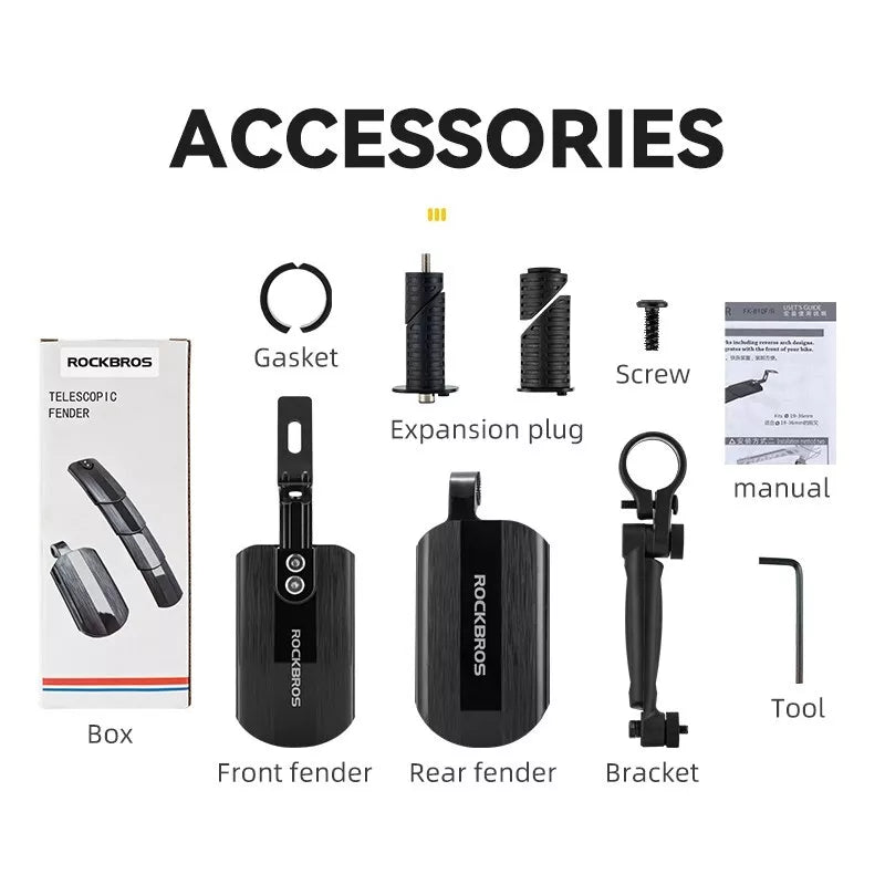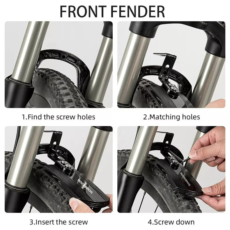 ROCKBROS cykelstänkskärm fram + bak för 24-29 tum, infällbar och justerbar