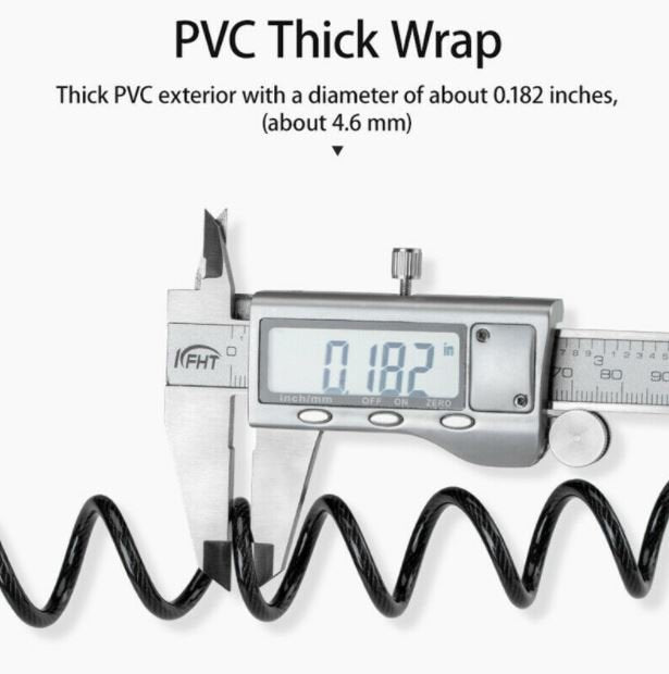 Material: zinklegering + stålkabel + PVC-gummihylsa