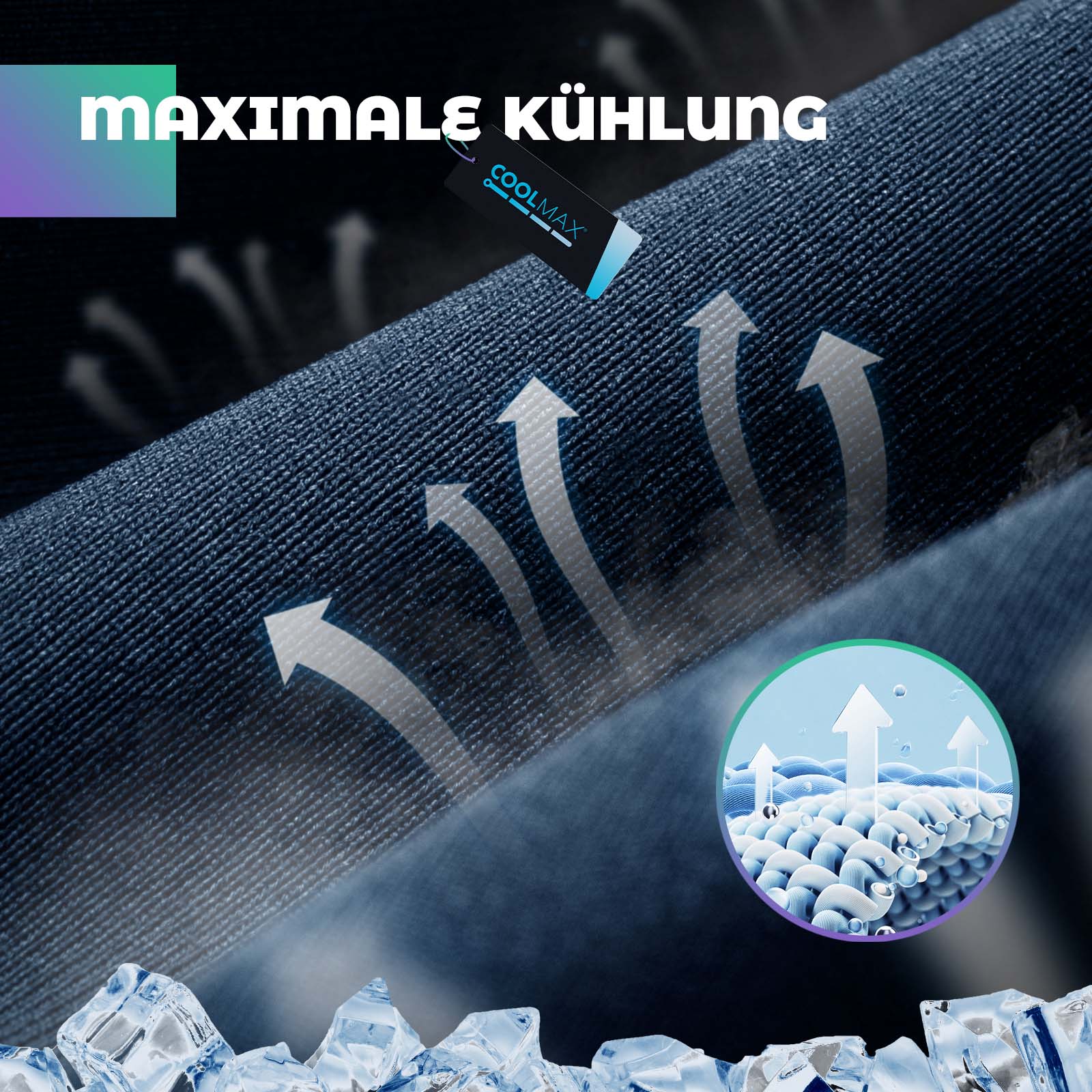 - Svalt och andningsbart: COOLMAX cool fibertyg; tygets 4-kanalsstruktur transporterar snabbt bort svett och fukt från hudytan och torkar 4-8 gånger snabbare än bomull.